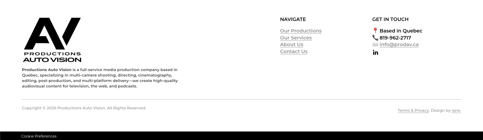 • Cookie Preferences — especially important if you’re in Canada or somewhere else it's mandatory.